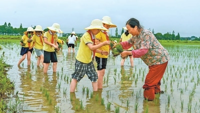 圖為學(xué)生們在體驗(yàn)插秧。王棟棟攝