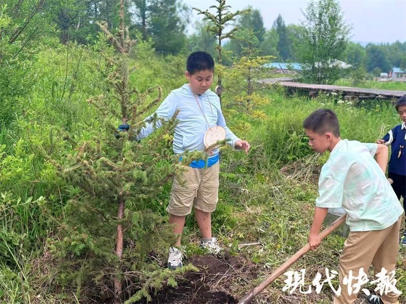 這樣的美麗風(fēng)景讓第一次來到大草原的周云昊很興奮。“我們從當(dāng)?shù)亓私獾?,這是一代又一代人努力的結(jié)果,讓我們也深切感受到生態(tài)保護(hù)的重要性?!毖袑W(xué)途中,周云昊和小伙伴們還專門在當(dāng)?shù)亓謭?chǎng)種下一棵樹?!跋M芙】甸L大,成為守護(hù)綠色草原的小衛(wèi)士?!?/p>