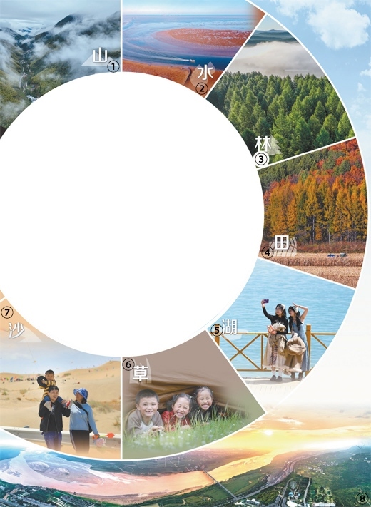圖①:雨后的武夷山國(guó)家公園云霧繚繞。國(guó)家公園是我國(guó)自然生態(tài)系統(tǒng)中最重要、自然景觀最獨(dú)特、自然遺產(chǎn)最精華、生物多樣性最富集的部分,我國(guó)國(guó)家公園建設(shè)是生態(tài)文明建設(shè)中具有示范引領(lǐng)意義的工程。邱汝泉攝(新華社發(fā))圖②:山東東營(yíng)市紅灘濕地旅游區(qū)生態(tài)濕地,生長(zhǎng)在灘涂上的堿蓬等鹽生植物,如同一塊巨大的紅地毯。劉智峰攝(影像中國(guó))圖③:河北承德市圍場(chǎng)滿族蒙古族自治縣塞罕壩國(guó)家森林公園。組建至今,塞罕壩機(jī)械林場(chǎng)營(yíng)造人工林百萬(wàn)畝,創(chuàng)造了荒原變林海的奇跡。劉滿倉(cāng)攝(影像中國(guó))圖④:黑龍江雞西密山市黑土地上種植的玉米。近年來(lái),我國(guó)加強(qiáng)黑土地保護(hù),守護(hù)“耕地中的大熊貓”。孫樹寶攝(影像中國(guó))圖⑤:游客在青海湖畔拍照。當(dāng)?shù)亓己玫纳鷳B(tài)環(huán)境和優(yōu)美的景色吸引了來(lái)自全國(guó)各地的大量游客。新華社記者 張 龍攝圖⑥:四川甘孜藏族自治州日通草原上,躲在帳篷里的小朋友享受假日生活。我國(guó)持續(xù)推進(jìn)草原生態(tài)保護(hù)修復(fù),穩(wěn)步提升草原生態(tài)功能。新華社記者 江宏景攝圖⑦:新疆博湖縣博斯騰湖畔的艾勒遜烏拉沙漠,游客正帶著孩子在游玩。近年來(lái),我國(guó)推進(jìn)科學(xué)化、規(guī)?;紊常攸c(diǎn)治理區(qū)實(shí)現(xiàn)“沙進(jìn)人退”到“綠進(jìn)沙退”的歷史性轉(zhuǎn)變。年 磊攝(人民視覺(jué))圖⑧:黃河陜西潼關(guān)段景觀。近年來(lái),我國(guó)持續(xù)推動(dòng)黃河流域生態(tài)保護(hù)和高質(zhì)量發(fā)展,流域生態(tài)環(huán)境持續(xù)明顯向好,讓黃河成為造福人民的幸福河。王生暉攝(人民視覺(jué))