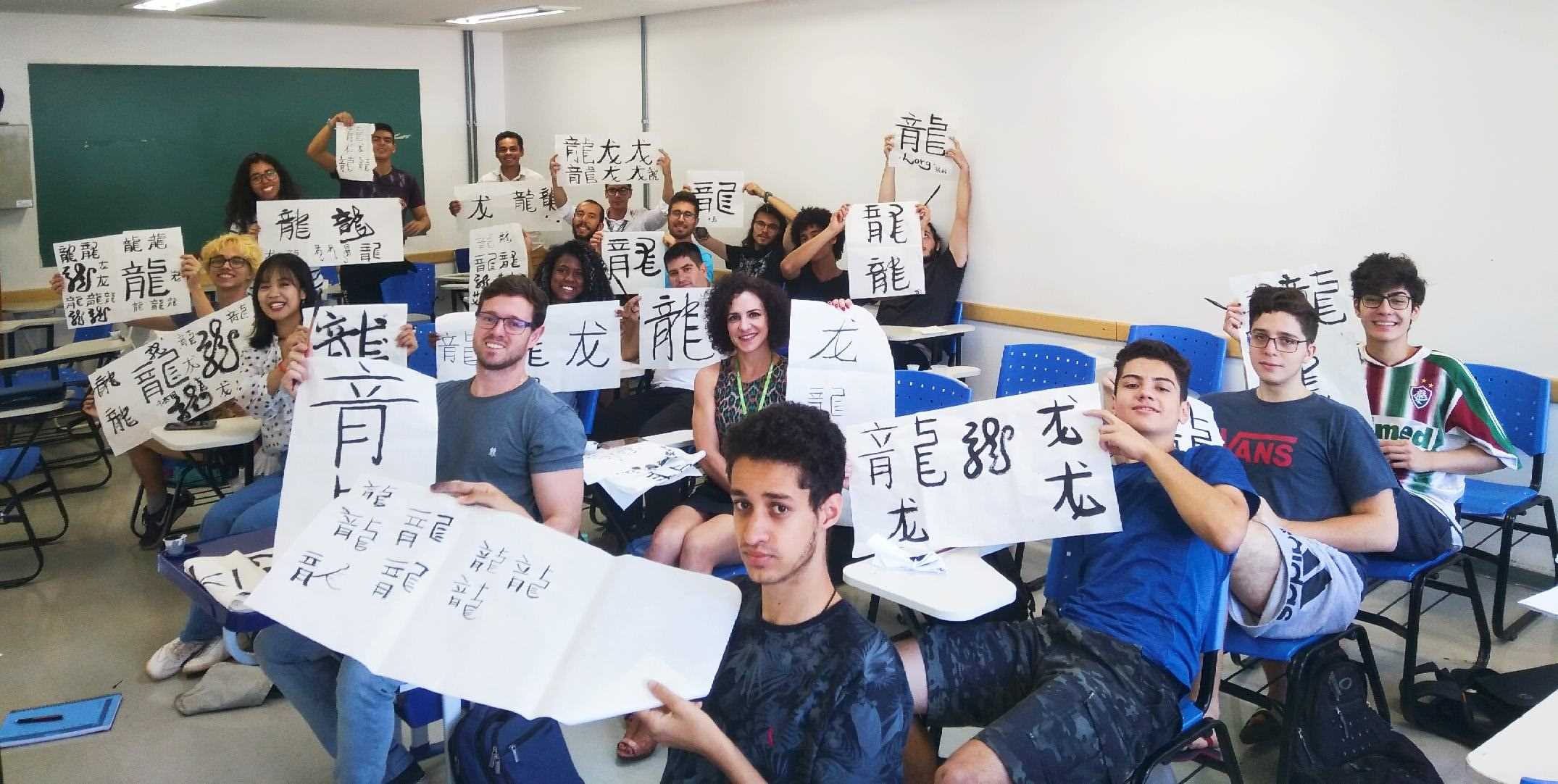 巴西學(xué)生在孔子學(xué)院體驗(yàn)中國文化。