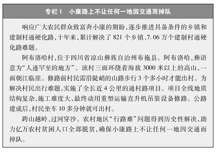 解決特殊地區(qū)出行難題。改一條溜索、修一段公路就能給群眾打開一扇脫貧致富的大門。為了保障偏遠山區(qū)百姓安全出行,推動“溜索改橋”建設,專項資金支持、精心組織實施,用3年時間徹底改善了溜索地區(qū)出行條件(專欄3)。推進“直過民族”③和人口較少民族聚居區(qū)農村公路建設,解決民族地區(qū)交通閉塞的突出問題,加快民族地區(qū)脫貧致富步伐。