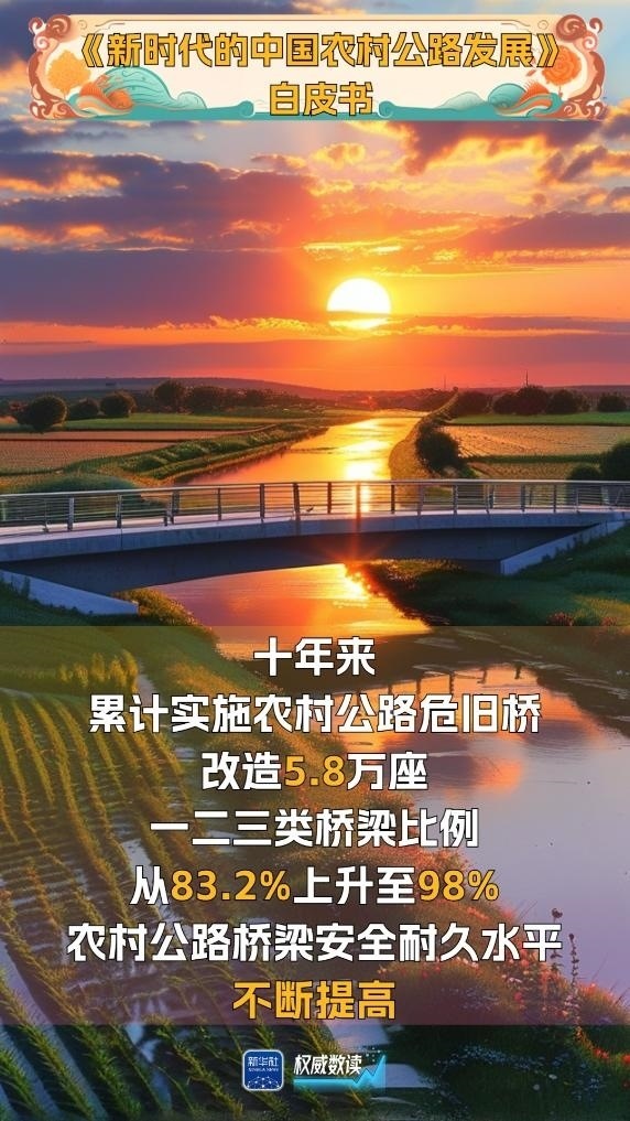 國務(wù)院新聞辦公室29日發(fā)布的《新時(shí)代的中國農(nóng)村公路發(fā)展》白皮書顯示,截至2023年底,我國農(nóng)村公路總里程增長(zhǎng)到460萬公里,占公路總里程的84.6%,目前已形成了“外通內(nèi)聯(lián)、通村暢鄉(xiāng)、客車到村、安全便捷”的農(nóng)村交通運(yùn)輸網(wǎng)絡(luò),帶動(dòng)農(nóng)村地區(qū)整體面貌發(fā)生了巨大變化。