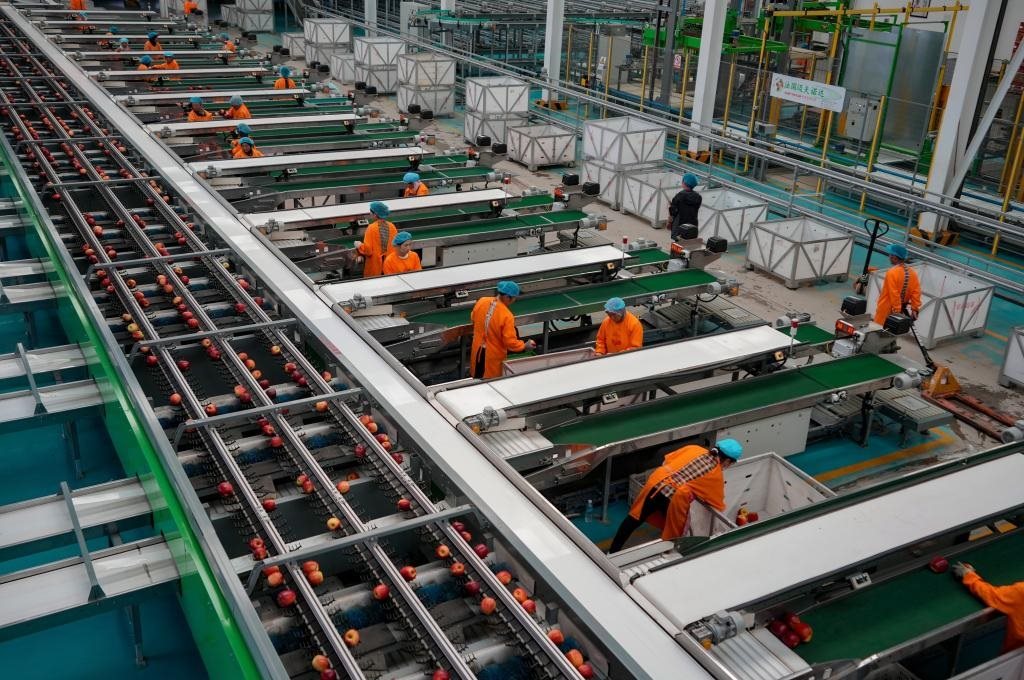 9月29日,工作人員在昭通市超越蘋果基地蘋果分選線上工作。金秋時(shí)節(jié),位于烏蒙山區(qū)的云南省昭通市迎來了蘋果豐收季。近年來,昭通市大力發(fā)展蘋果產(chǎn)業(yè),將其作為鞏固拓展脫貧攻堅(jiān)成果、推進(jìn)鄉(xiāng)村振興的重要支柱產(chǎn)業(yè)。2023年,全市蘋果綜合產(chǎn)值達(dá)到130億元,蘋果成為了群眾的增收致富果。新華社記者陳欣波攝