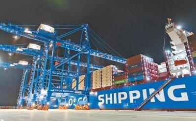 軟聯(lián)通共建“一帶一路”國(guó)家在工作制度對(duì)接、技術(shù)標(biāo)準(zhǔn)協(xié)調(diào)、檢驗(yàn)結(jié)果互認(rèn)等方面強(qiáng)化合作、統(tǒng)一標(biāo)準(zhǔn),貿(mào)易自由化便利化水平不斷提升。上海洋山港海關(guān)對(duì)接共建國(guó)家進(jìn)出口貨物相關(guān)標(biāo)準(zhǔn),推動(dòng)通關(guān)一體化方式申報(bào),提升通關(guān)效率。圖為無(wú)人駕駛的全自動(dòng)導(dǎo)引車在洋山港穿梭往來(lái),搬運(yùn)集裝箱。王 初攝(影像中國(guó))