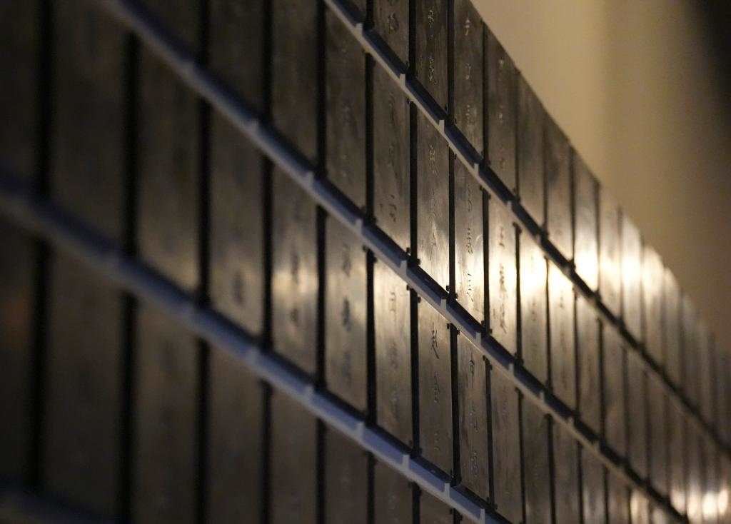 在侵華日軍第七三一部隊(duì)本部舊址展出的殉難者名單墻(12月12日攝)。新華社記者 王松 攝