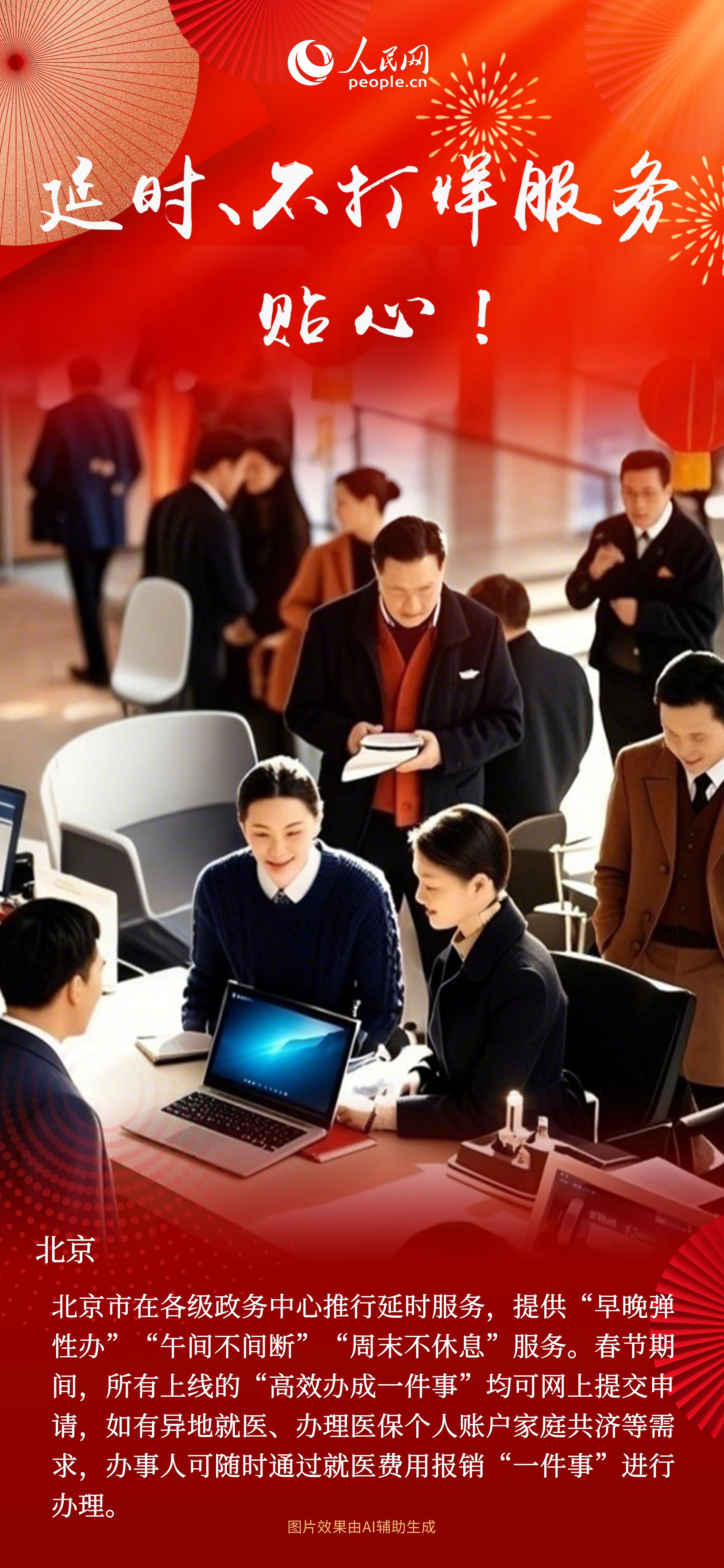 “一件接著一件辦”“這件辦完再下班”“幫辦代辦少操心”.......臨近春節(jié)假期,國家政務(wù)服務(wù)平臺(tái)上線了2025春節(jié)服務(wù)專區(qū),集合出行、文旅、民生、天氣等多項(xiàng)服務(wù),各地也紛紛推出服務(wù)不打烊、節(jié)日辦事專場等一系列便民舉措。為企業(yè)群眾提供暖心、安心的政務(wù)服務(wù),讓大家過節(jié)無憂、辦事不愁。