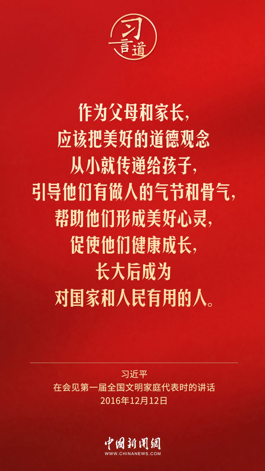 2月1日出版的《求是》雜志發(fā)表中共中央總書記、國家主席、中央軍委主席習近平2016年12月12日在會見第一屆全國文明家庭代表時講話的一部分《注重家庭,注重家教,注重家風》。