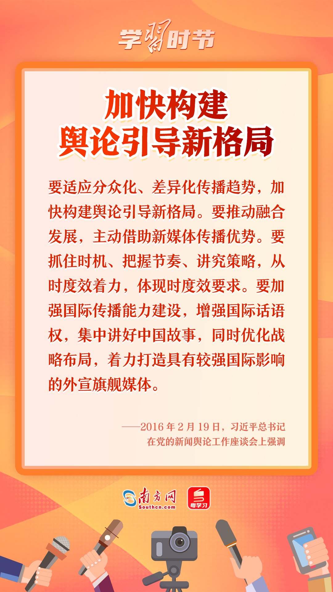 2016年2月19日,習(xí)近平總書記主持召開黨的新聞輿論工作座談會并發(fā)表重要講話。他強調(diào),“黨的新聞輿論工作是黨的一項重要工作,是治國理政、定國安邦的大事”。