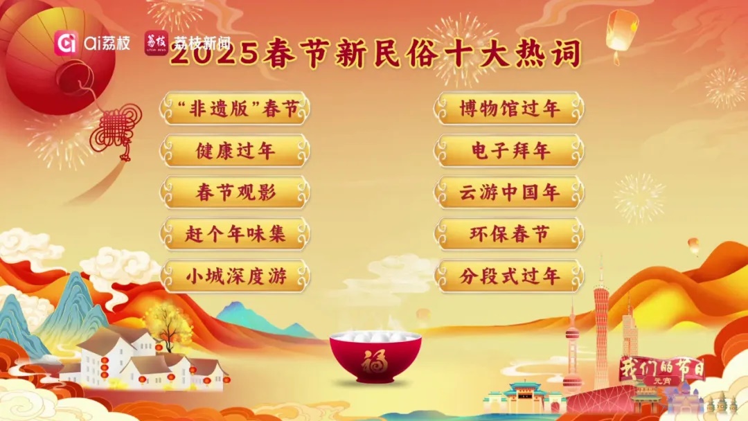 此次網(wǎng)友票選出的前十名新民俗熱詞涉及春節(jié)相關(guān)的節(jié)點大事,傳遞出千姿百態(tài)的過節(jié)方式,映射了時代變遷下不斷更新的過節(jié)態(tài)度,不同的春節(jié)“打開方式”,哪個詞語與你最有共鳴呢?