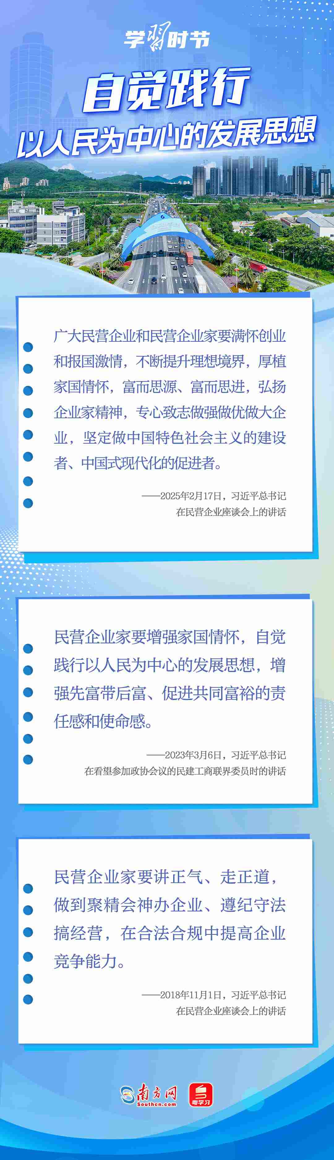 黨的十八大以來(lái),習(xí)近平總書(shū)記對(duì)民營(yíng)經(jīng)濟(jì)發(fā)展高度重視、念茲在茲,多次重申堅(jiān)持“兩個(gè)毫不動(dòng)搖”的重要方針,強(qiáng)調(diào)鼓勵(lì)、支持、引導(dǎo)非公有制經(jīng)濟(jì)繼續(xù)發(fā)展壯大,為實(shí)現(xiàn)民營(yíng)經(jīng)濟(jì)健康發(fā)展、高質(zhì)量發(fā)展注入強(qiáng)大信心和動(dòng)力。讓我們一起學(xué)習(xí)習(xí)近平總書(shū)記關(guān)于民營(yíng)經(jīng)濟(jì)的重要論述,在關(guān)鍵時(shí)刻讓民營(yíng)企業(yè)和民營(yíng)企業(yè)家堅(jiān)定發(fā)展信心,踏踏實(shí)實(shí)謀發(fā)展。