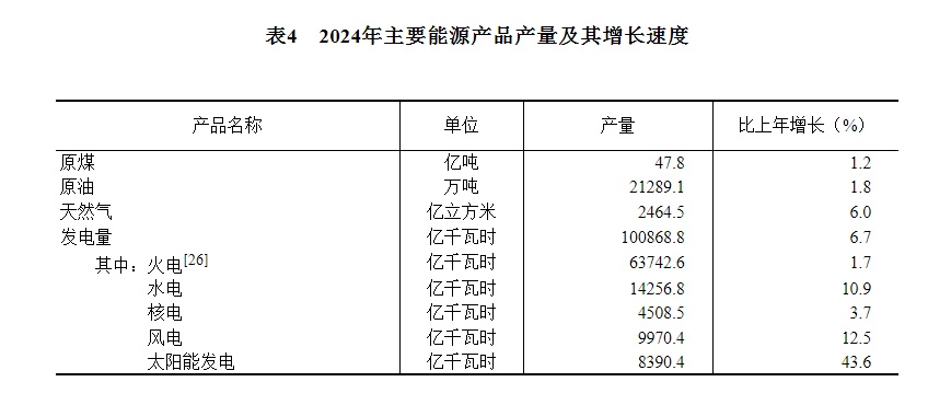初步核算,全年一次能源生產總量[25]49.8億噸標準煤,比上年增長4.6%。