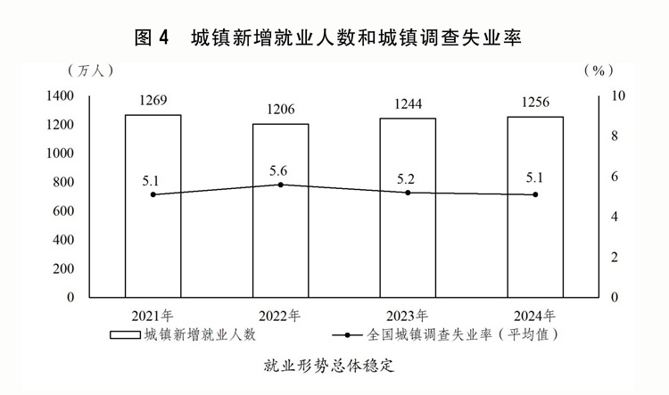 ——全國(guó)城鎮(zhèn)調(diào)查失業(yè)率5.5%左右,城鎮(zhèn)新增就業(yè)1200萬(wàn)人以上。關(guān)于全國(guó)城鎮(zhèn)調(diào)查失業(yè)率,主要考慮:2025年重點(diǎn)人群就業(yè)壓力仍然較大,將城鎮(zhèn)調(diào)查失業(yè)率目標(biāo)定為5.5%左右,與2024年保持一致,體現(xiàn)了加大穩(wěn)就業(yè)力度的導(dǎo)向。關(guān)于城鎮(zhèn)新增就業(yè),主要考慮:2025年需在城鎮(zhèn)就業(yè)的新成長(zhǎng)勞動(dòng)力規(guī)模進(jìn)一步增加,就業(yè)總量與結(jié)構(gòu)性矛盾依然突出,1200萬(wàn)人以上的預(yù)期目標(biāo)與2024年目標(biāo)保持一致,能夠更好體現(xiàn)穩(wěn)就業(yè)惠民生的力度和決心;同時(shí),隨著經(jīng)濟(jì)持續(xù)回升向好,就業(yè)政策持續(xù)發(fā)力,實(shí)現(xiàn)這一目標(biāo)是有支撐的。