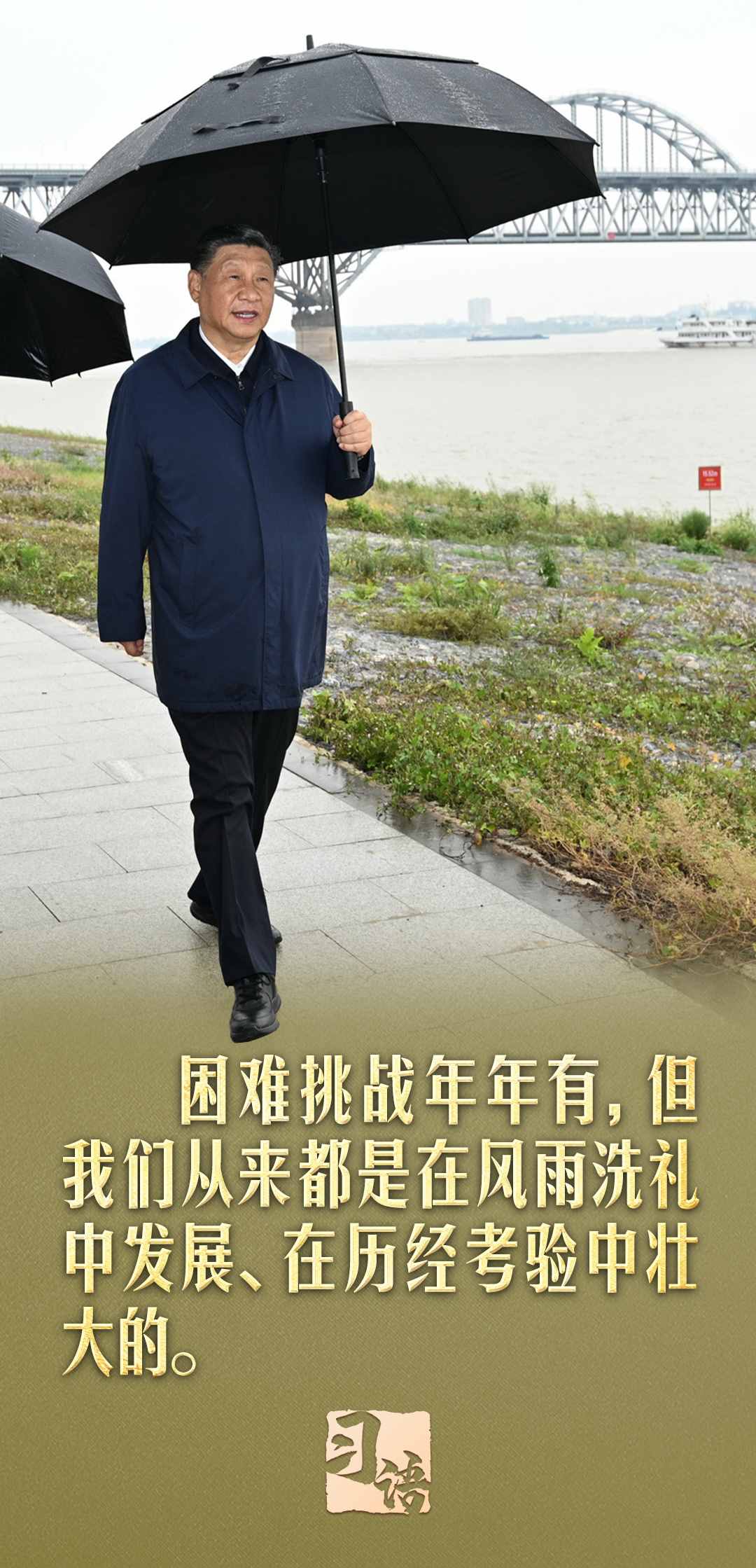 “遵道而行,但到半途須努力;會(huì)心不遠(yuǎn),要登絕頂莫辭勞”。在慶祝中華人民共和國成立75周年招待會(huì)上,習(xí)近平總書記引用南岳衡山這副對(duì)聯(lián)說道:“我們要居安思危、未雨綢繆,緊緊依靠全黨全軍全國各族人民,堅(jiān)決戰(zhàn)勝一切不確定難預(yù)料的風(fēng)險(xiǎn)挑戰(zhàn)。任何困難都無法阻擋中國人民前進(jìn)的步伐!”