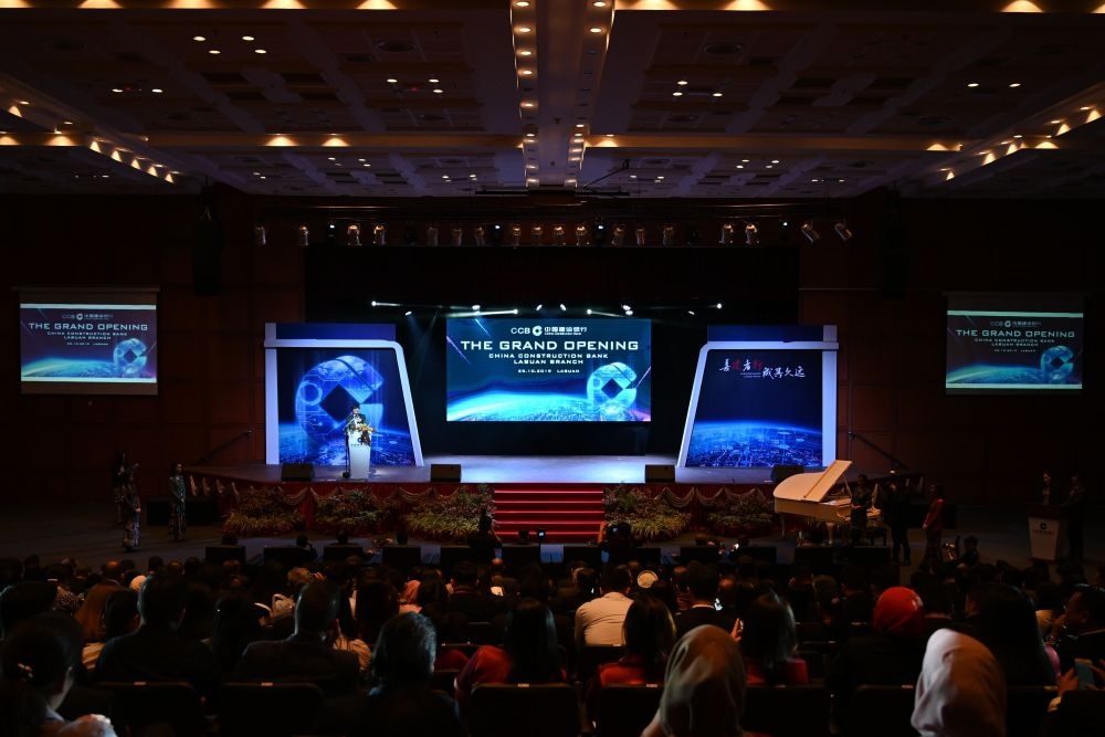 2019年10月25日,中國(guó)建設(shè)銀行納閩分行在馬來(lái)西亞納閩開(kāi)業(yè),該分行獲得了馬來(lái)西亞首塊數(shù)字銀行牌照和中國(guó)建設(shè)銀行在東南亞首張人民幣清算行牌照。這是開(kāi)業(yè)儀式現(xiàn)場(chǎng)。