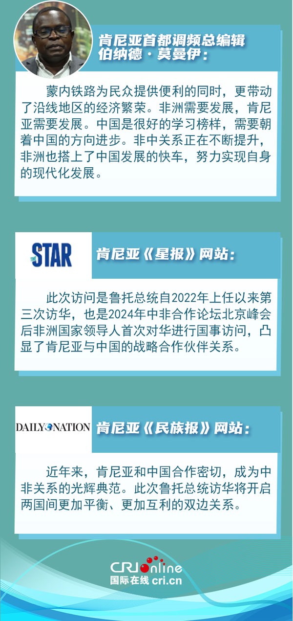 中肯友誼源于古老的海上絲綢之路。新時(shí)代以來(lái)中肯兩國(guó)高層交往密切,政治互信持續(xù)深化??夏醽喐鹘缯J(rèn)為,肯中合作秉持共同愿景,非洲國(guó)家應(yīng)充分發(fā)揮非中合作潛力,攜手建設(shè)更加公平公正、多元繁榮的世界。