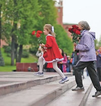 俄羅斯民眾向莫斯科無(wú)名烈士墓獻(xiàn)花。