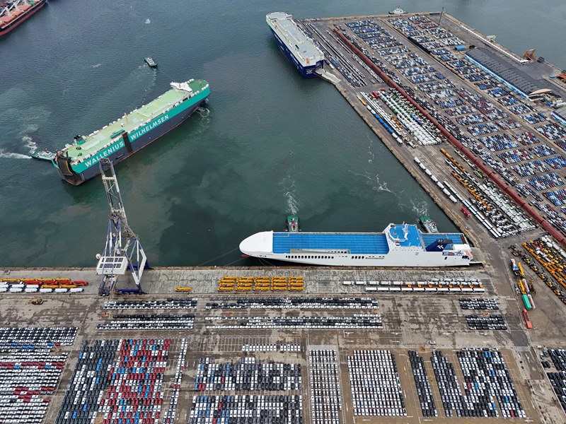 連日來,在山東港口煙臺港,大批出口車輛集結待發(fā),汽車運輸船穿梭往來,一派繁忙景象。今年1—5月,煙臺港完成商品車運量29.6萬輛。目前,煙臺港已實現(xiàn)全球主要商品車碼頭全覆蓋、全聯(lián)通,形成“以航線帶貨源、以貨源促航線”的良性循環(huán)。