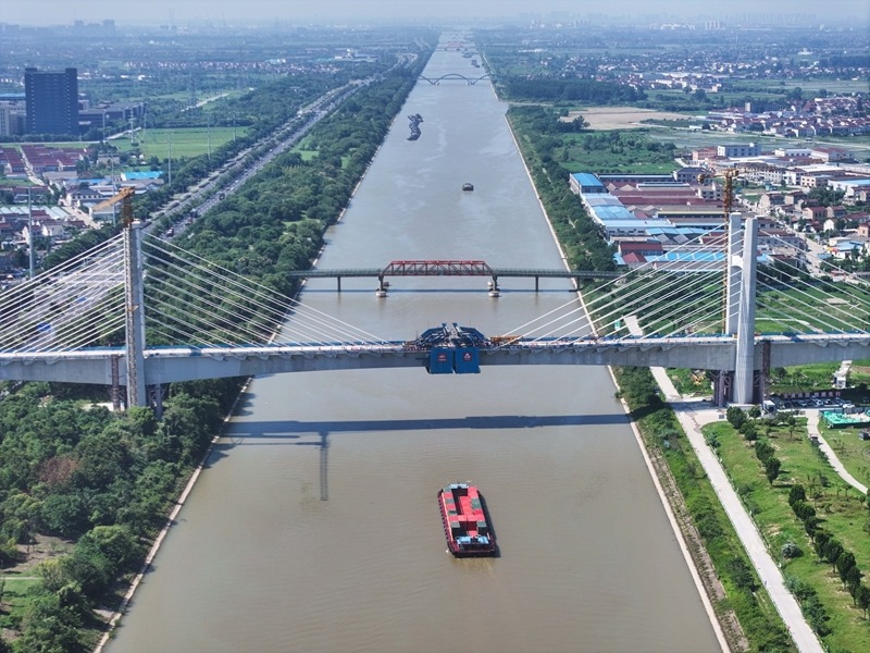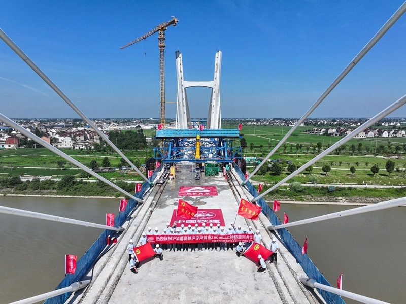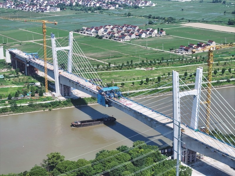 滬渝蓉高鐵通泰揚(yáng)特大橋全長172.9公里,跨越江蘇南通、泰州、揚(yáng)州三市。此次合龍的跨引江河斜拉橋全長522.3米,主跨220米,是滬渝蓉高鐵滬寧段首個(gè)實(shí)現(xiàn)合龍的斜拉橋。作為全線關(guān)鍵控制性節(jié)點(diǎn)工程,該橋的順利合龍為滬渝蓉高鐵通泰揚(yáng)特大橋后續(xù)鋪軌及全線貫通創(chuàng)造了有利條件。