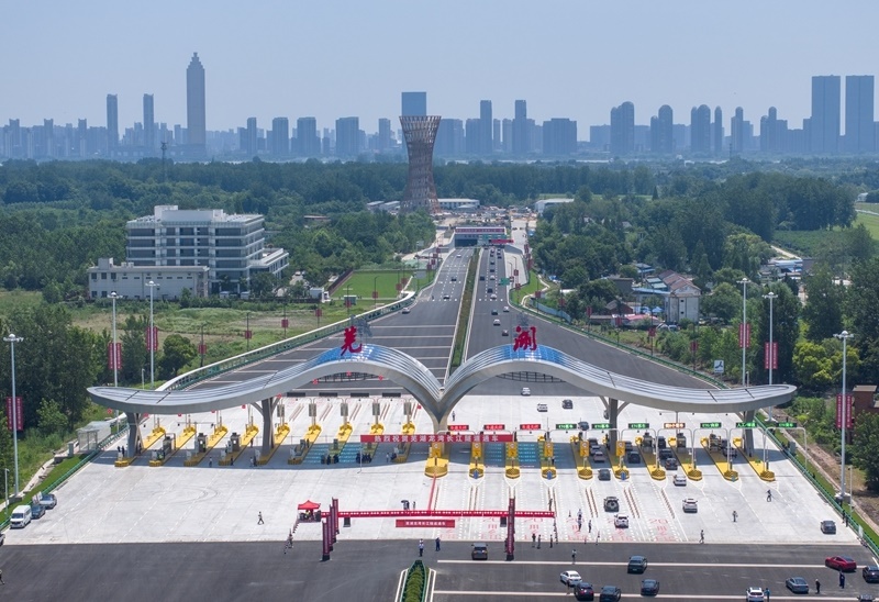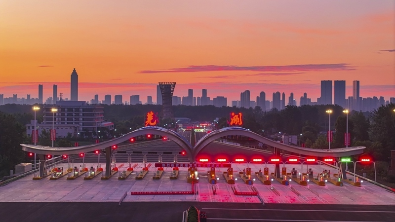 7月1日,車輛通過蕪湖龍灣長(zhǎng)江隧道收費(fèi)站(無人機(jī)照片)。