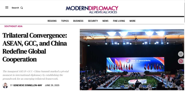 6月29日,歐洲《現(xiàn)代外交》網(wǎng)站刊發(fā)評論文章《三方協(xié)同:東盟、海合會與中國重新定義全球合作》。文章從不久前圓滿閉幕的首屆東盟—中國—海合會峰會出發(fā),指出東盟、海合會與中國之間的三方合作對推動世界多極化、促進全球南方國家發(fā)展具有重要意義,中國作為負責任大國在全球治理中發(fā)揮了關(guān)鍵領(lǐng)導作用。