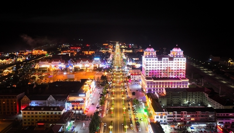 7月4日拍攝的內(nèi)蒙古興安盟阿爾山市夜景(無(wú)人機(jī)照片)。