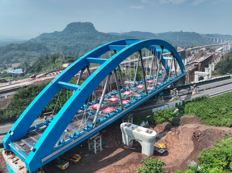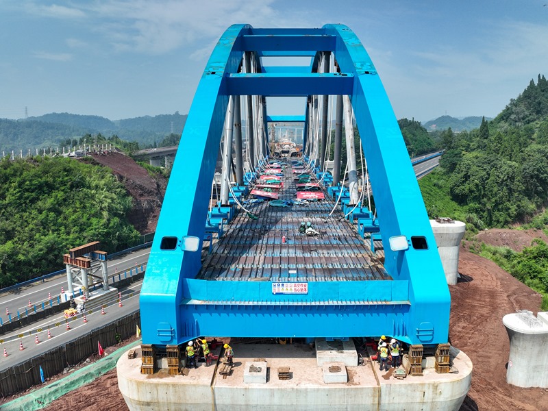 當日,由中鐵四局承建的西渝高鐵跨營達高速公路大橋主體平穩(wěn)落在橋墩上,標志著全國首座高鐵大跨度網(wǎng)狀吊桿系桿拱橋頂推施工完成,為全線按期通車奠定了堅實基礎。