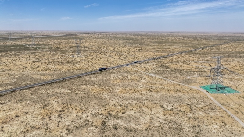 7月13日,在塔里木盆地南緣的新疆和田地區(qū)民豐縣,隨著牽引機將最后一段電線成功從183號鐵塔拽至188號鐵塔,標(biāo)志著歷時15年建設(shè)的環(huán)塔里木盆地750千伏輸變電工程全線貫通,形成了一條圍繞塔里木盆地的750千伏超高壓輸電環(huán)網(wǎng)。