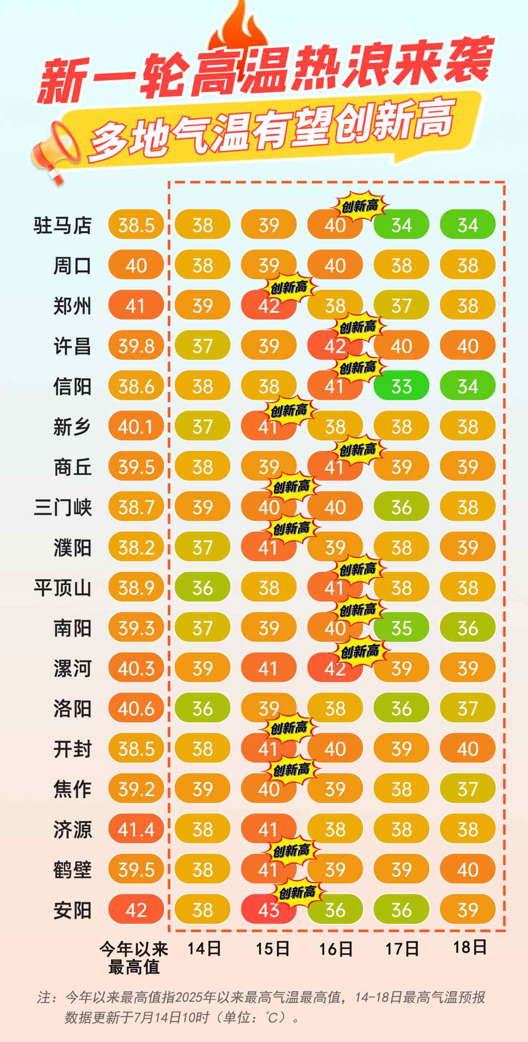 正如預(yù)報(bào)所示,昨日(7月14日),我省大范圍地區(qū)經(jīng)歷了酷熱天氣,鄭州、新鄉(xiāng)、焦作等地氣溫紛紛突破40℃大關(guān),河南省氣象臺(tái)也于當(dāng)日中午12時(shí)果斷將預(yù)警升級(jí)為紅色。