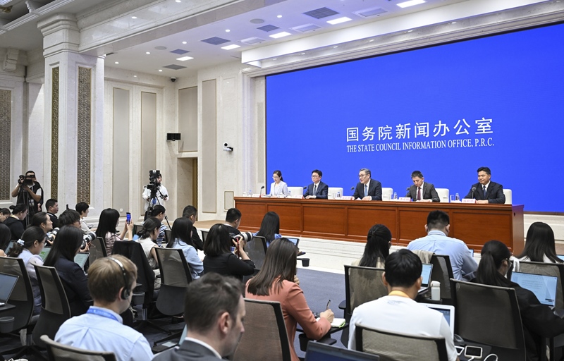 7月18日,國務(wù)院新聞辦公室舉行“高質(zhì)量完成‘十四五’規(guī)劃”系列主題新聞發(fā)布會。商務(wù)部部長王文濤、商務(wù)部國際貿(mào)易談判代表兼副部長李成鋼、商務(wù)部副部長兼國際貿(mào)易談判副代表凌激、商務(wù)部副部長盛秋平介紹“十四五”商務(wù)高質(zhì)量發(fā)展成就,并答記者問。