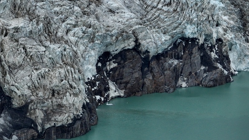 7月19日拍攝的薩普冰川冰舌末端(無人機照片)。