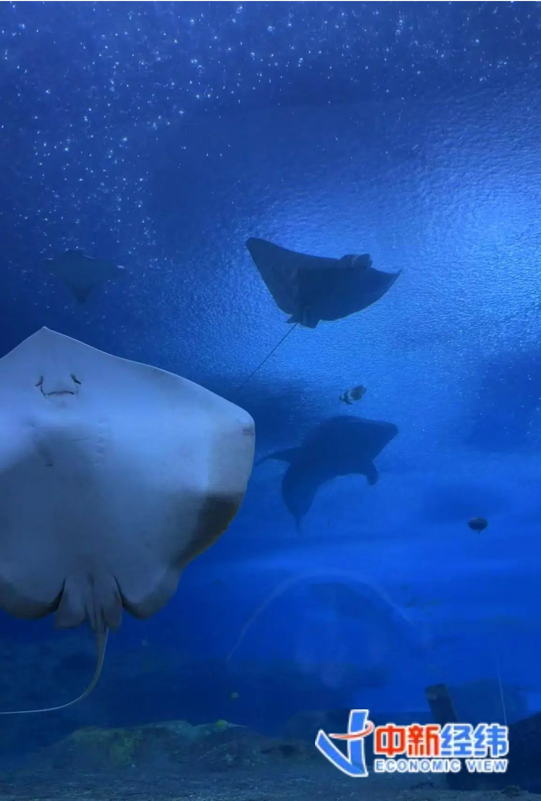 在海底區(qū),小林感到自己仿佛來到了海底世界的IMAX影廳,抬頭就能看到各種海底生物在頭上游過。晚上工作人員還會撤去警戒線,讓他們能與動物更加貼近。“那個時候的體驗,就是‘藍調(diào)時刻’,幽靜又神秘,抬頭就能看到鯨鯊巨物從頭頂游過。夜深一些,還能看到有小魚沉底睡覺休息?!毙×终f道。