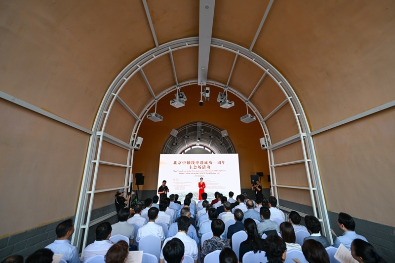 當日,“北京中軸線申遺成功一周年主會場活動”在北京鐘鼓樓廣場舉行?;顒影l(fā)布了《北京中軸線保護傳承三年行動計劃(2025年—2027年)》、《北京中軸線:中國理想都城秩序的杰作》叢書以及《世界文化遺產(chǎn)——北京中軸線》特種郵票等,展現(xiàn)申遺成功一年來,北京中軸線整體性和系統(tǒng)性保護、文化遺產(chǎn)傳承利用、國際交流合作等方面的一系列成果。
