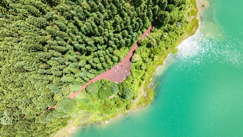 7月30日,游客在瑤池公園內(nèi)漫步游玩(無(wú)人機(jī)照片)。