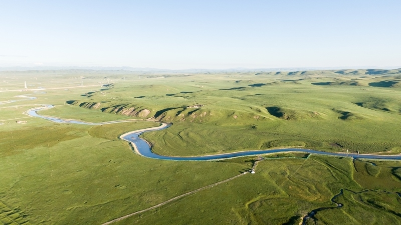 這是7月30日拍攝的青海省澤庫縣草原景色(無人機(jī)照片)。