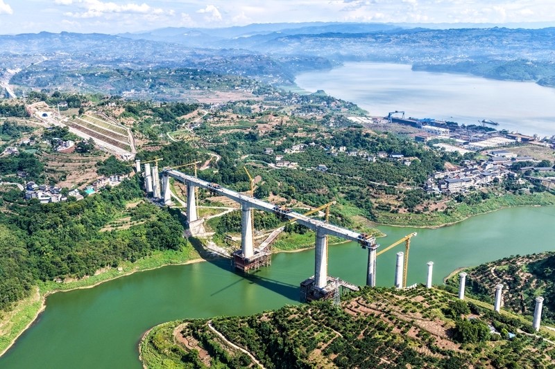 當(dāng)日,由中國鐵建大橋局承建的重慶至萬州高速鐵路(渝萬高鐵)渠溪河雙線特大橋順利合龍。渝萬高鐵渠溪河雙線特大橋位于重慶市涪陵區(qū)珍溪鎮(zhèn),橫跨長江支流渠溪河,全長約953米,是全線重難點(diǎn)工程。