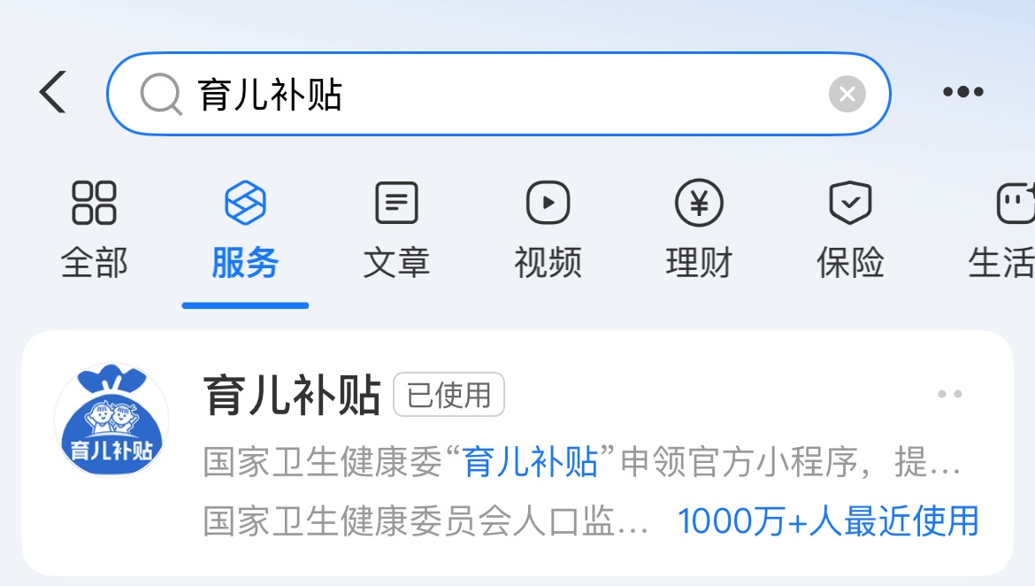 搜索“育兒補貼”