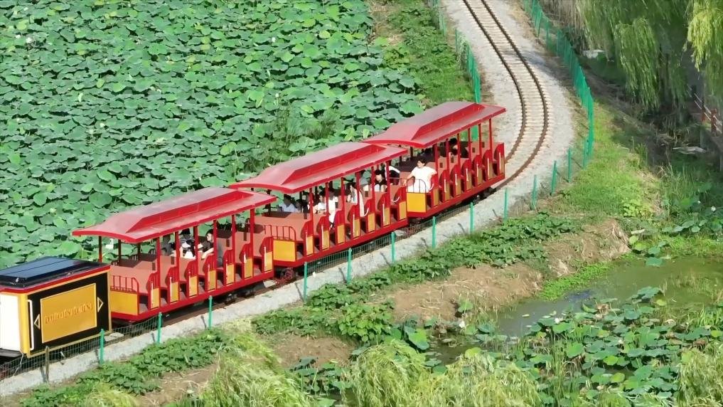 觀光小火車、游艇穿梭其間,農(nóng)旅融合讓“荷塘經(jīng)濟(jì)”綻放新光彩。