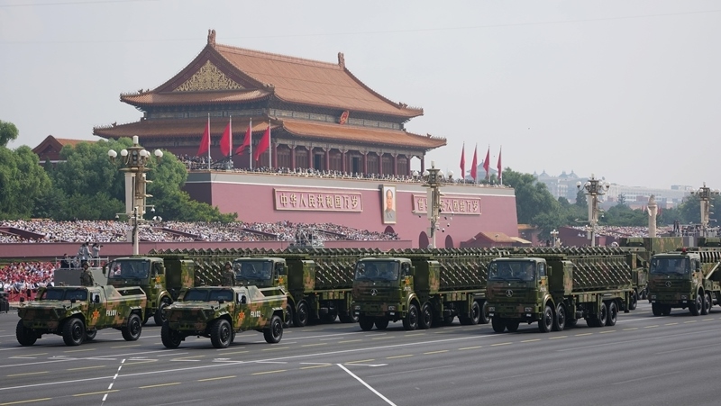 9月3日,紀(jì)念中國人民抗日戰(zhàn)爭暨世界反法西斯戰(zhàn)爭勝利80周年大會在北京隆重舉行。這是火箭軍方隊接受檢閱。