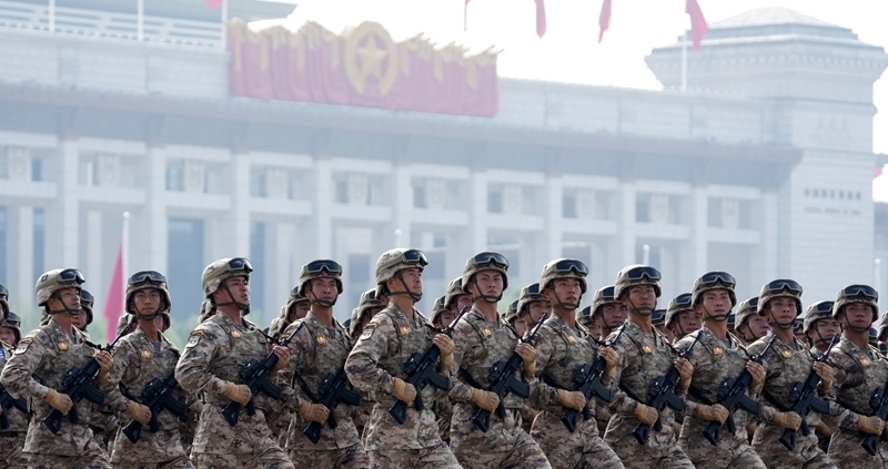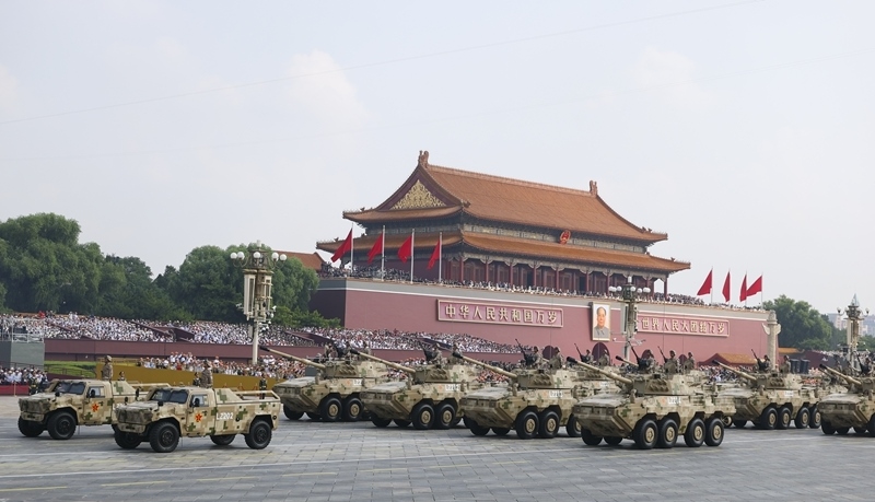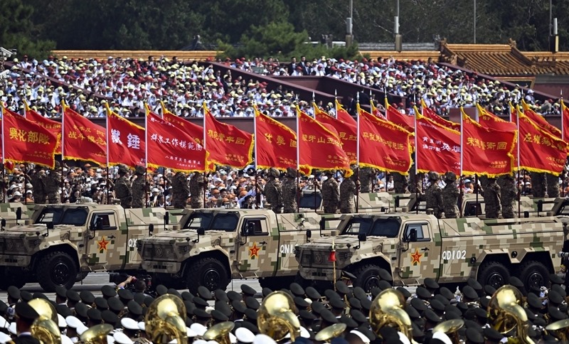 9月3日,紀(jì)念中國人民抗日戰(zhàn)爭暨世界反法西斯戰(zhàn)爭勝利80周年大會在北京隆重舉行。這是信息支援方隊接受檢閱。