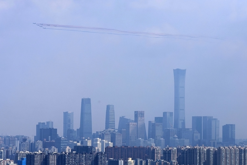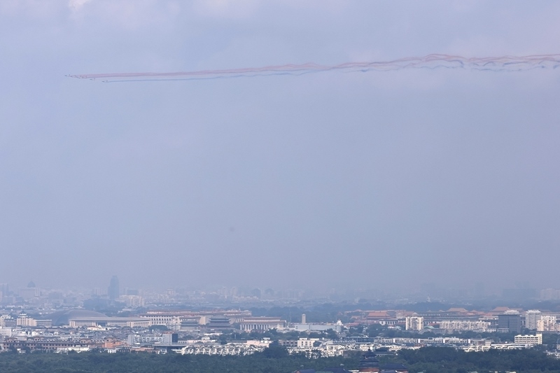 9月3日,紀(jì)念中國人民抗日戰(zhàn)爭暨世界反法西斯戰(zhàn)爭勝利80周年大會在北京隆重舉行。這是教練機(jī)梯隊接受檢閱。