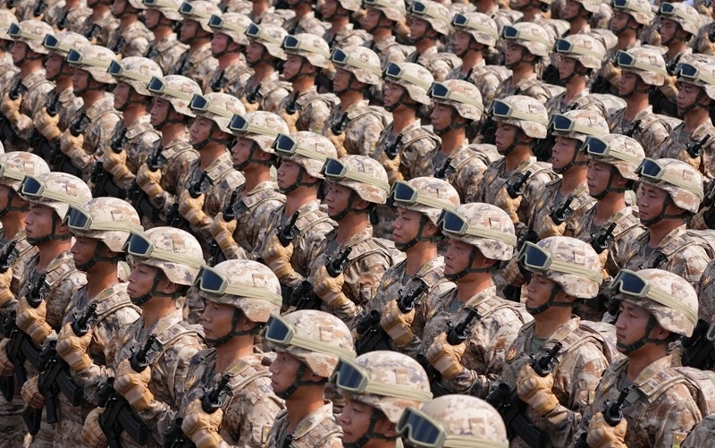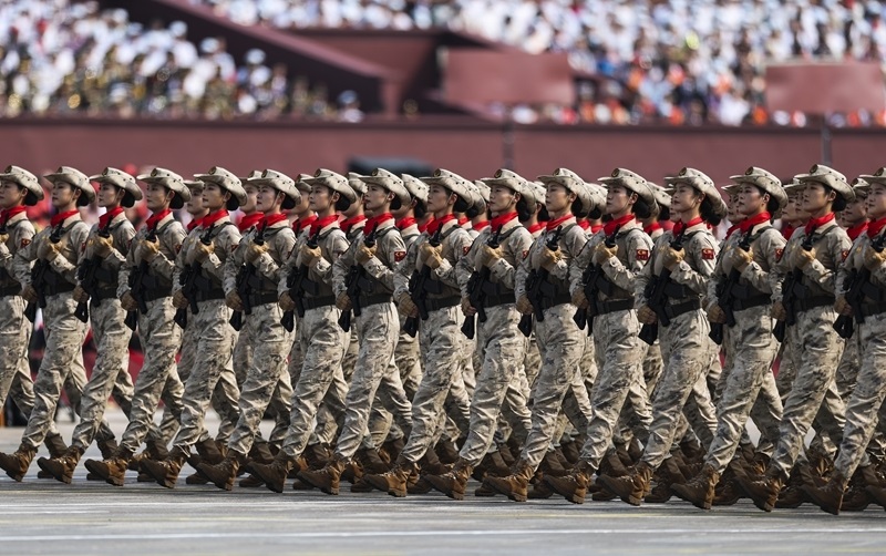 9月3日,紀念中國人民抗日戰(zhàn)爭暨世界反法西斯戰(zhàn)爭勝利80周年大會在北京隆重舉行。這是網(wǎng)絡空間部隊方隊接受檢閱。