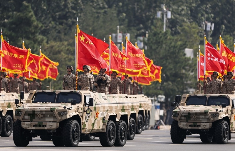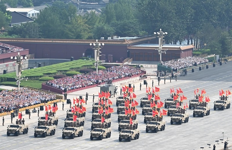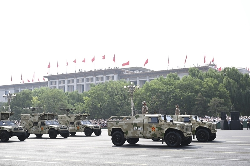 9月3日,紀念中國人民抗日戰(zhàn)爭暨世界反法西斯戰(zhàn)爭勝利80周年大會在北京隆重舉行。這是信息支援方隊接受檢閱。