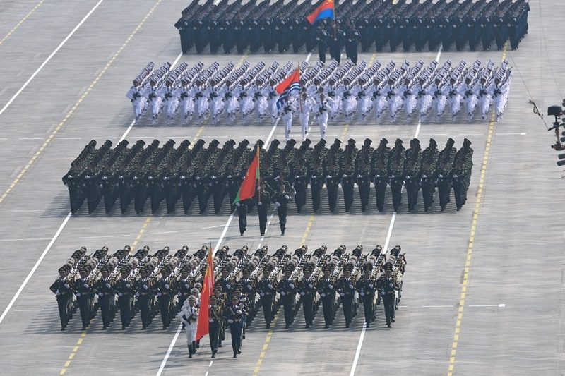 9月3日,紀念中國人民抗日戰(zhàn)爭暨世界反法西斯戰(zhàn)爭勝利80周年大會在北京隆重舉行。這是徒步方隊接受檢閱。