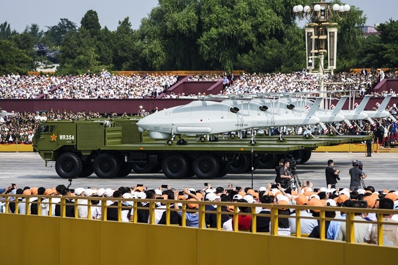 9月3日,紀念中國人民抗日戰(zhàn)爭暨世界反法西斯戰(zhàn)爭勝利80周年大會在北京隆重舉行。這是空中無人作戰(zhàn)方隊接受檢閱。