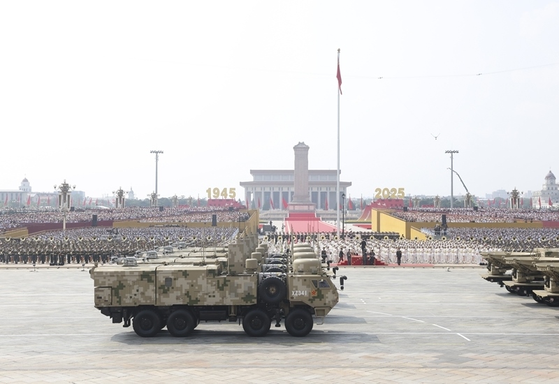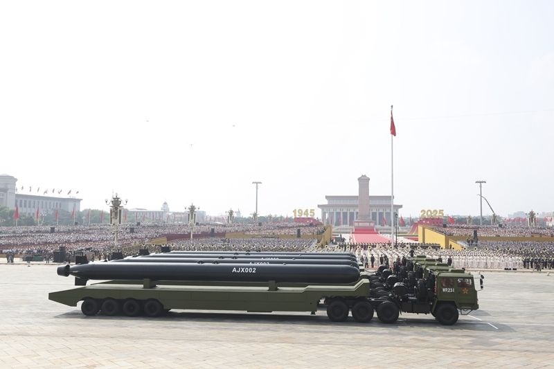 9月3日,紀念中國人民抗日戰(zhàn)爭暨世界反法西斯戰(zhàn)爭勝利80周年大會在北京隆重舉行。這是高超聲速導彈方隊接受檢閱。
