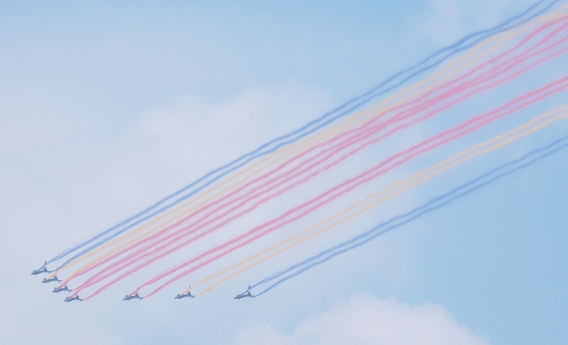 9月3日,紀念中國人民抗日戰(zhàn)爭暨世界反法西斯戰(zhàn)爭勝利80周年大會在北京隆重舉行。這是教練機梯隊接受檢閱。