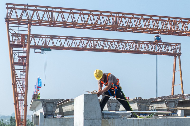 10月6日,在武漢都市圈環(huán)線高速公路孝感南段4標項目上,中鐵二十局建設(shè)者進行施工作業(yè)。