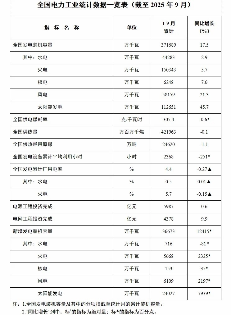 據“國家能源局”微信公眾號消息,10月26日,國家能源局發(fā)布1-9月份全國電力工業(yè)統(tǒng)計數據。