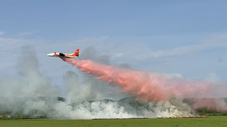 我國經(jīng)過三年自主攻關(guān)研制出的新舟60滅火飛機(jī)滅火實(shí)戰(zhàn)場(chǎng)景。新舟60滅火飛機(jī)最大載水量6噸,滿載作業(yè)半徑600公里,填補(bǔ)了森林草原滅火大飛機(jī)的空白和短板。應(yīng)急管理部供圖