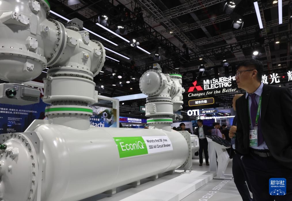 11月6日,參觀者在日立公司一款封閉式氣體絕緣開關(guān)設(shè)備展品旁駐足觀看,這是該型號(hào)產(chǎn)品的中國(guó)首展。